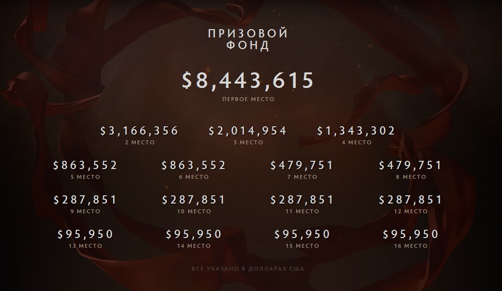 Так чемпиону на этот раз достанется аж 44% от призового фонда, который на данный момент уже превысил отметку в 19.195.000$. Получается, что команде занявшей первое место полагается как минимум 8.445.543$, при этом стоит учитывать, что сумма будет увеличиваться до самого финального поединка. Для сравнения в прошлом году первому месту полагалось "всего" 36 процентов призовых.